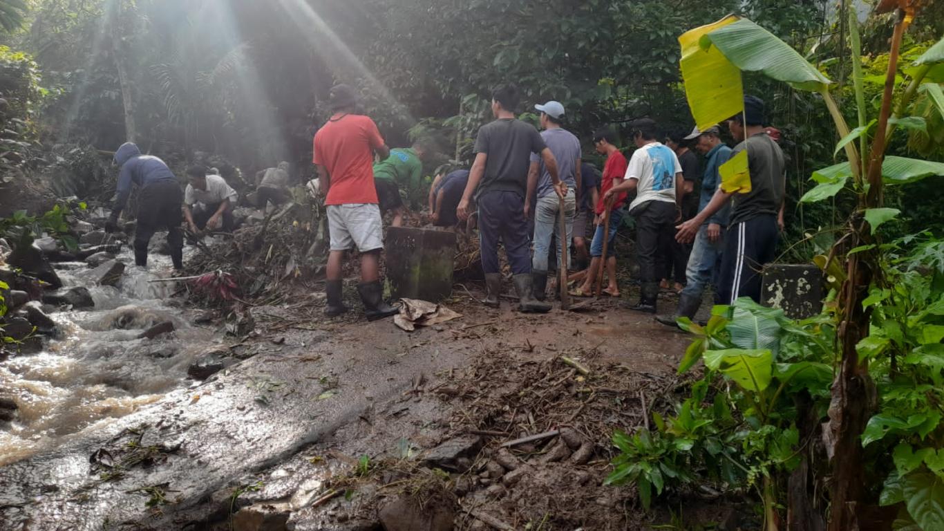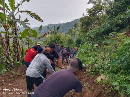 Selain melakukan pemantauan, Pemerintah Desa juga menggandeng masyarakat setempat untuk bergotong royong membersihkan material tanah longsor yang menutup akses jalan agar aktivitas warga dapat kembali normal.